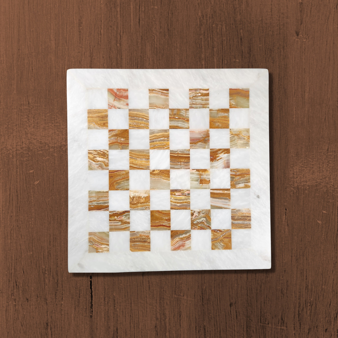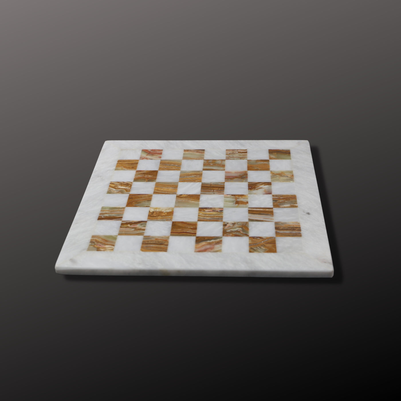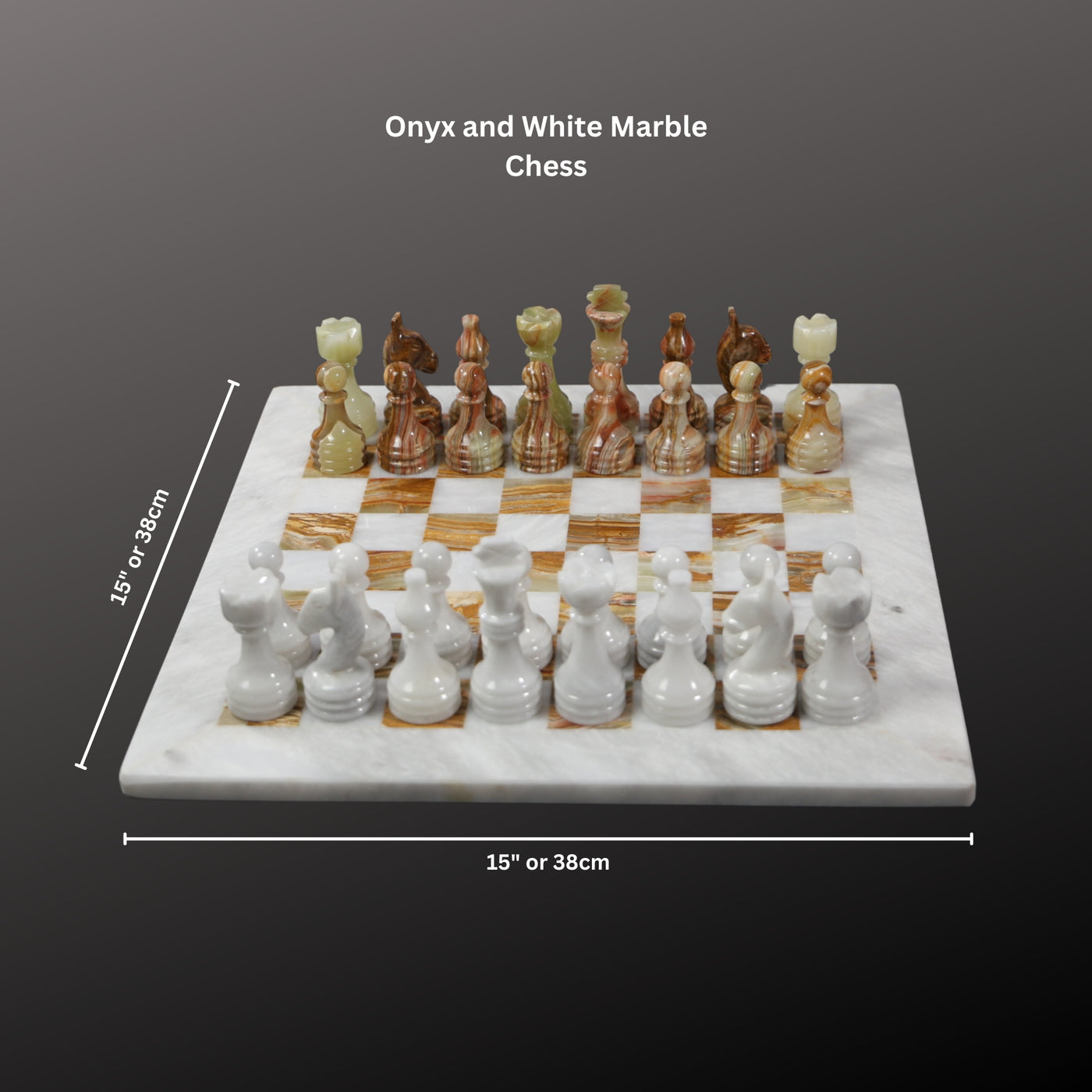 Introducing the ultimate chess set for those who appreciate the artistry and craftsmanship of handmade products. This exquisite, handcrafted chess set is crafted from natural onyx and white marble, creating a visually stunning contrast that will catch the eye.