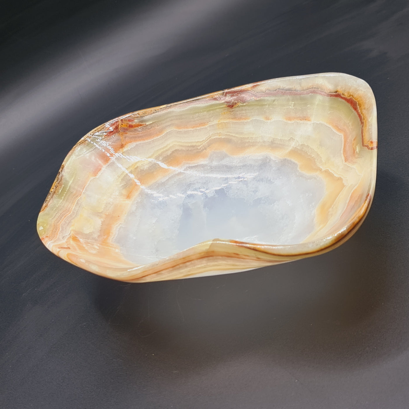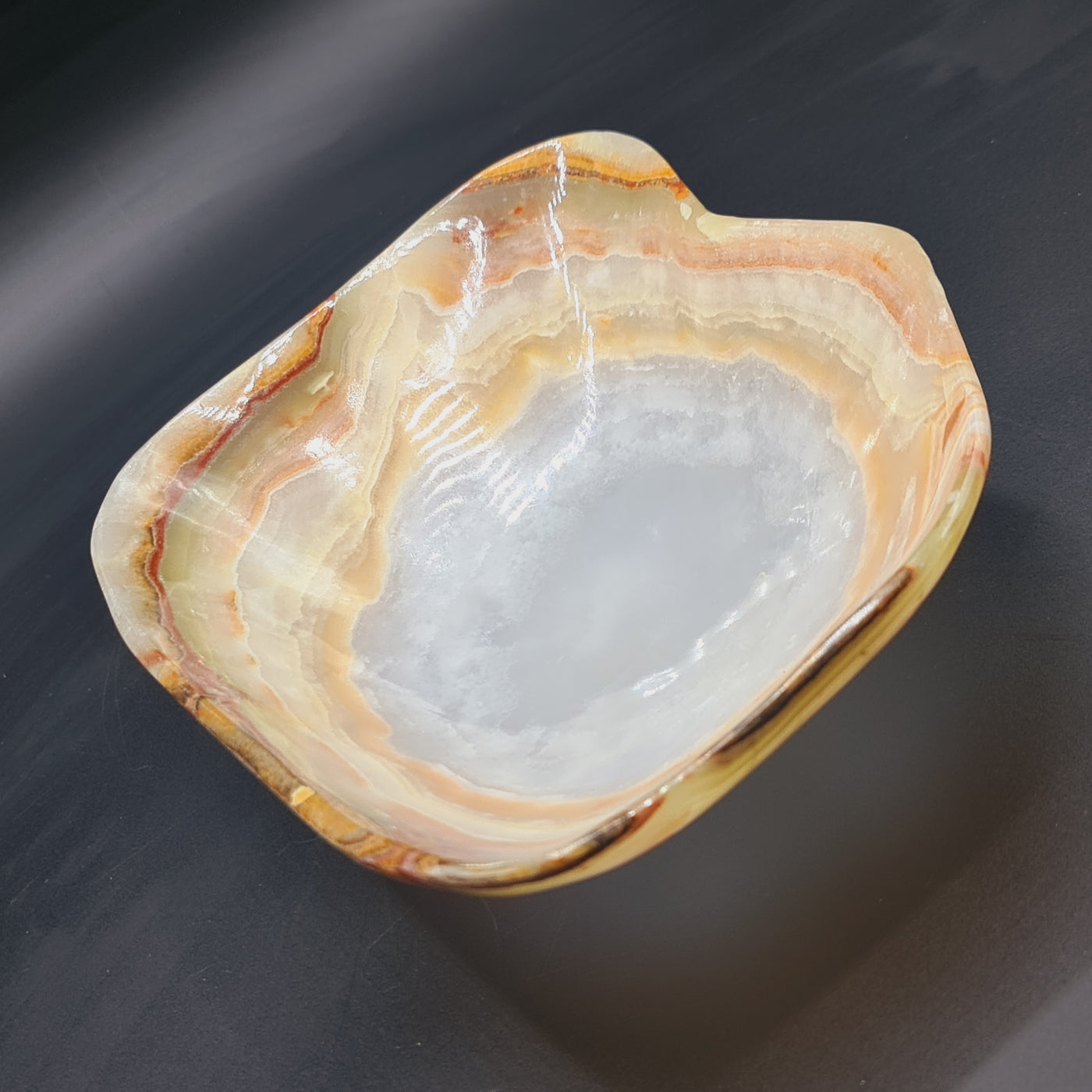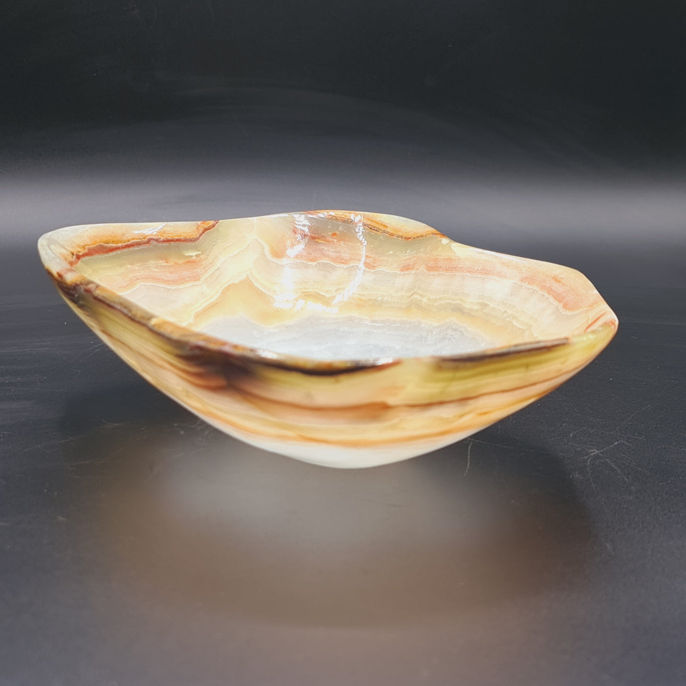 Natural beauty shines through with this free-form Onyx crystal bowl.