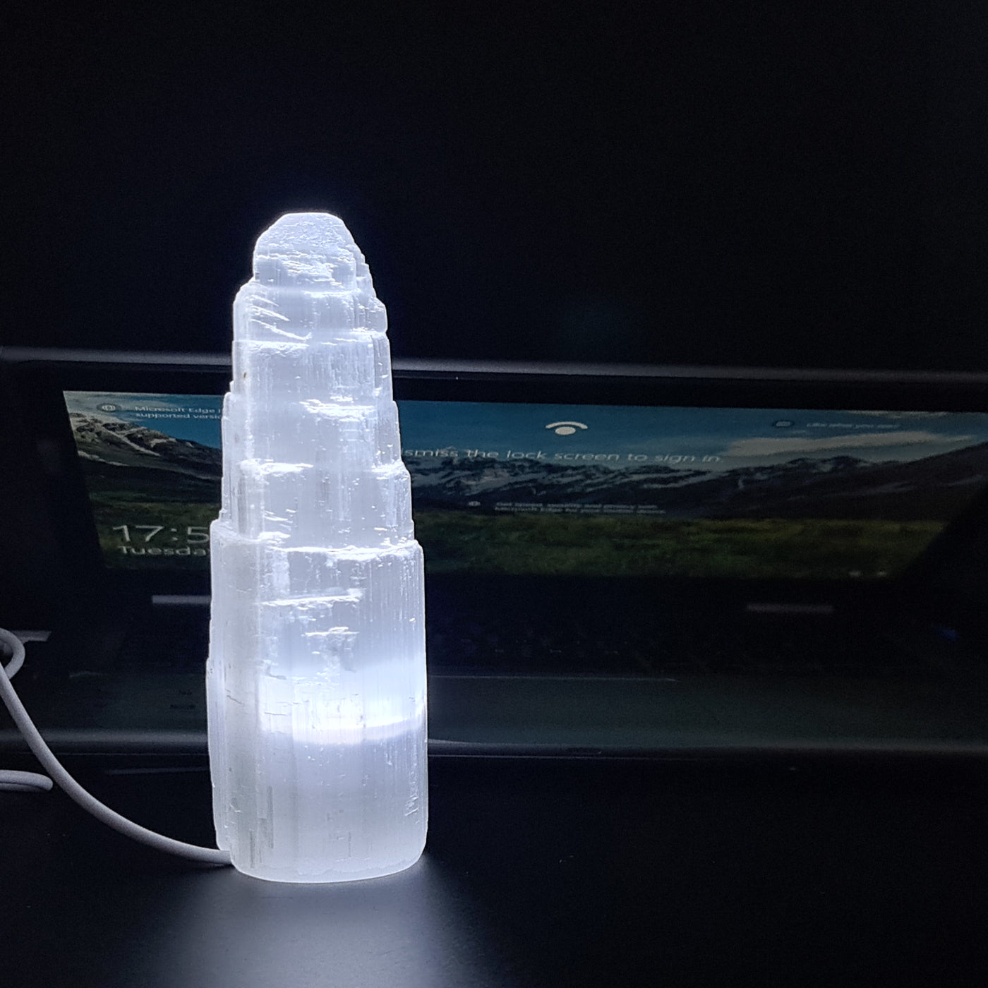 Your desk is never complete without a light for when the sun sets. You can't go wrong with this USB selenite lamp, which features white LEDs to create heat in cold spaces and meets all your lighting needs!